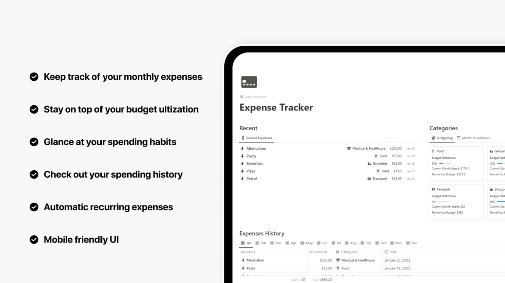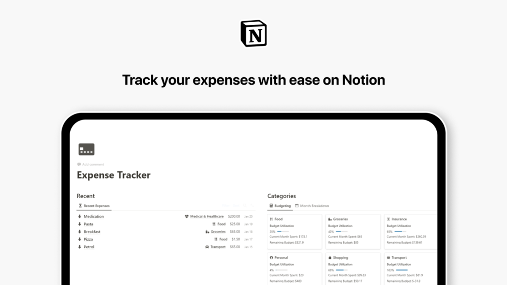 A Notion dashboard to effortlessly key and track your expenses and manage your budget.