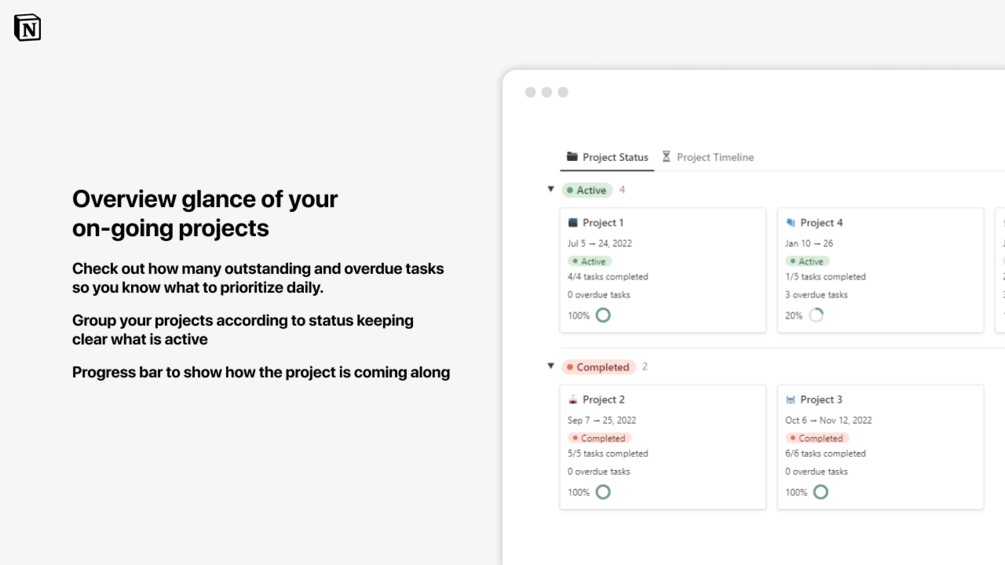 - Timeline overview for all ongoing project on hand.